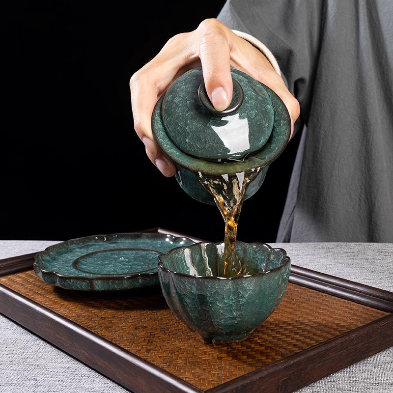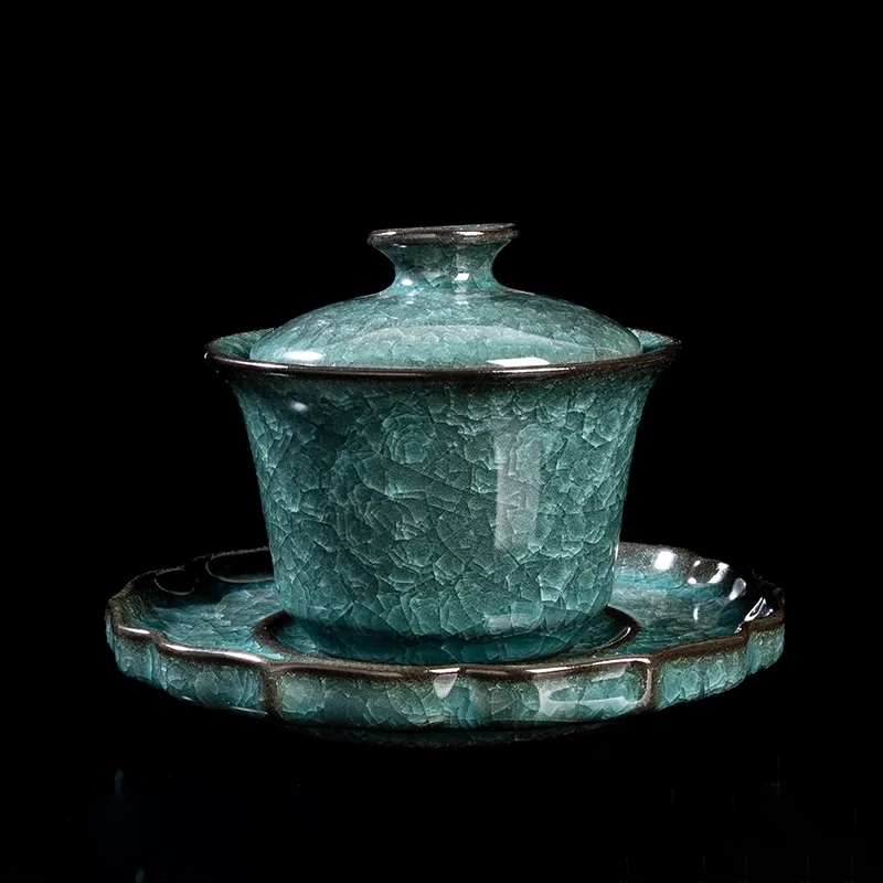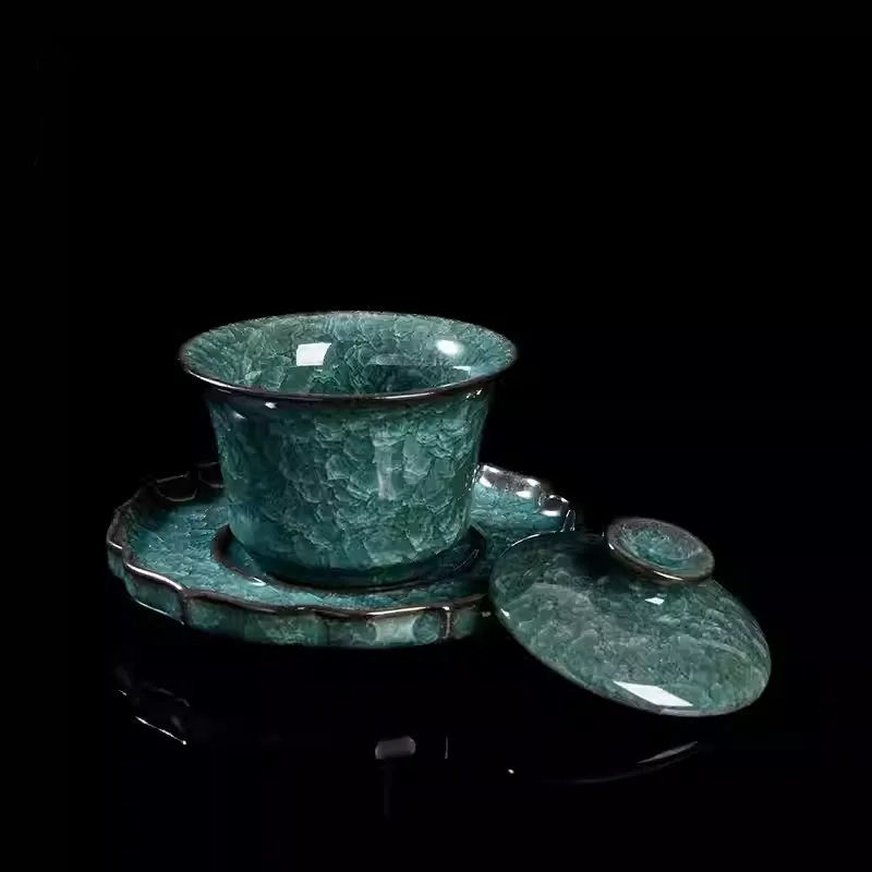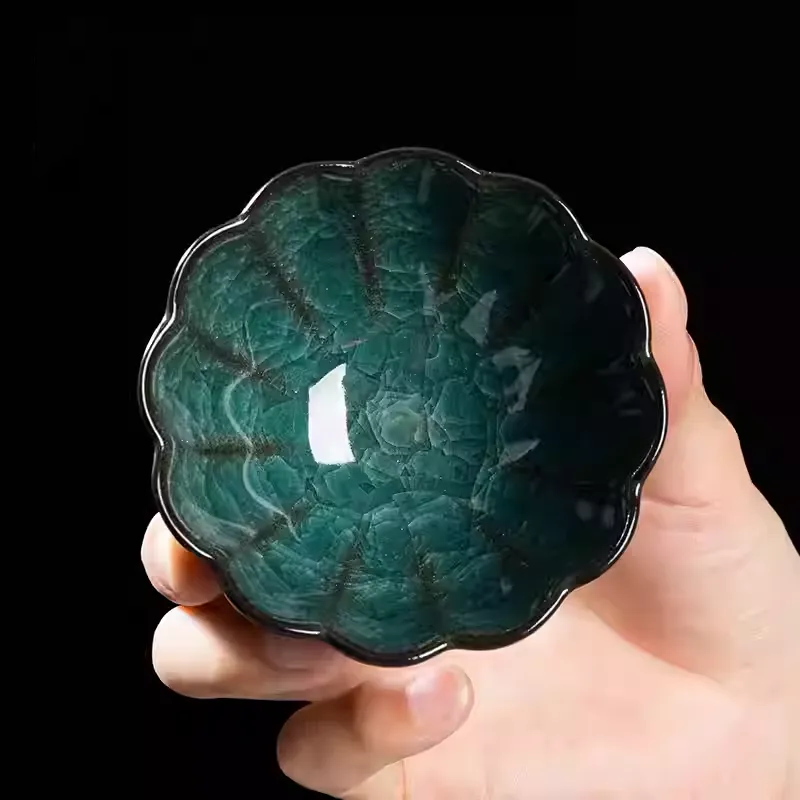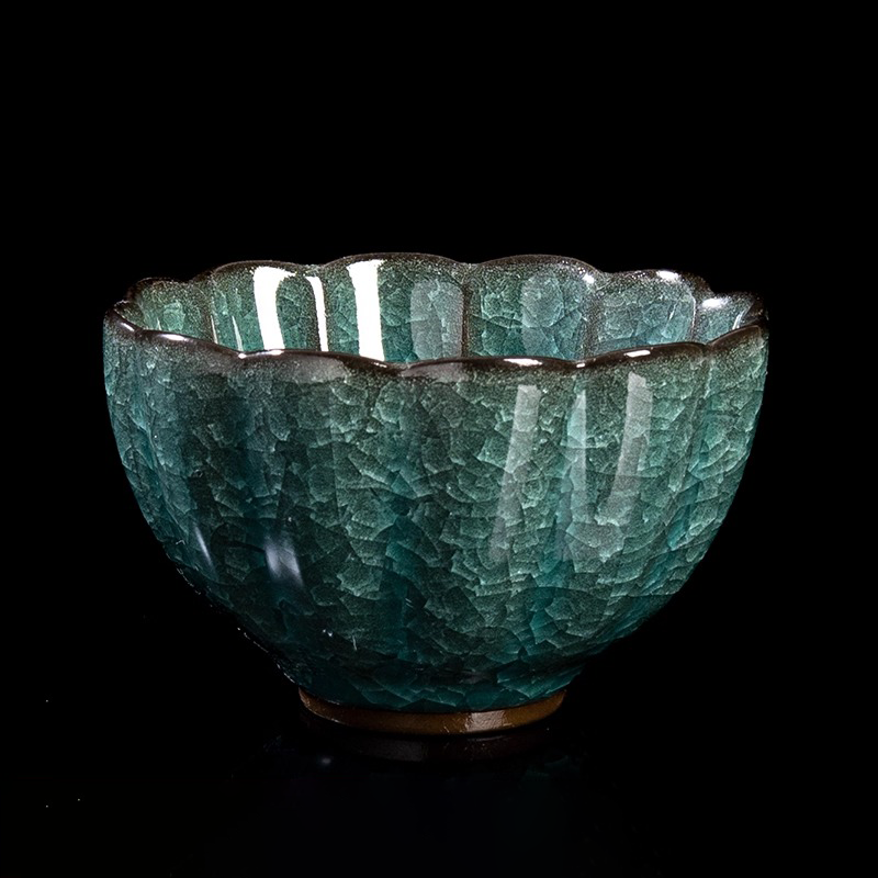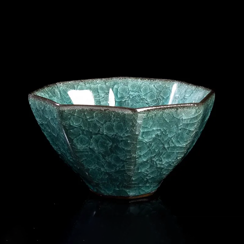 Ice‑Crackle Glaze Ceramic Teacup – Celadon‑Green-Crackle (180 ml each)