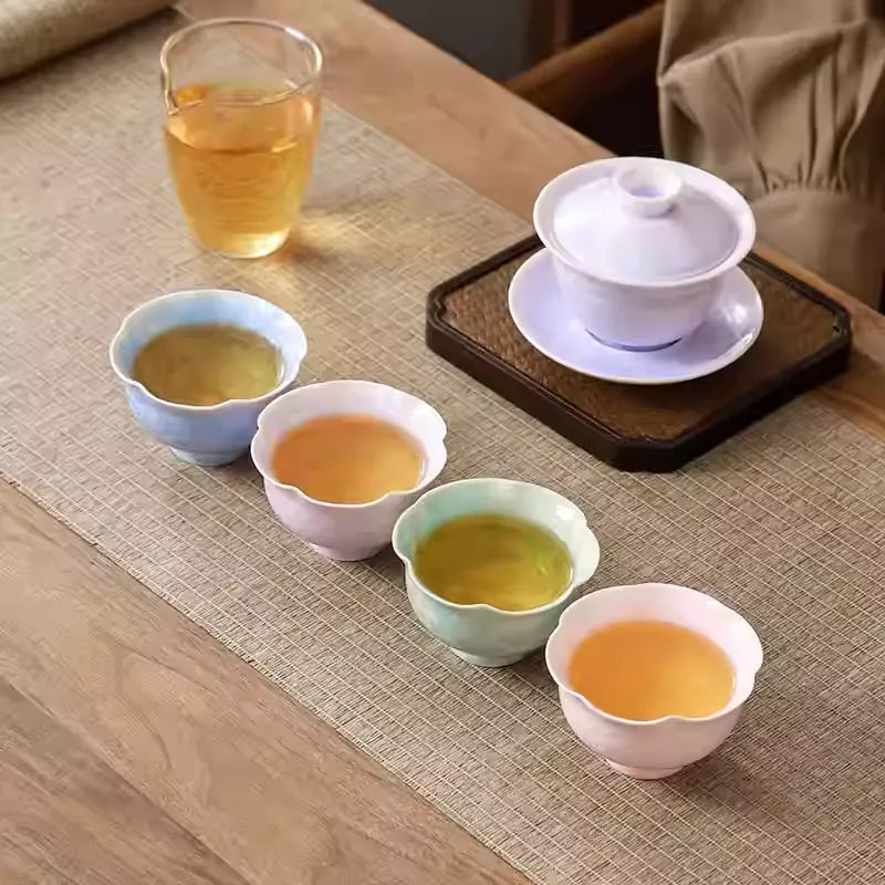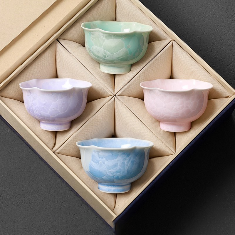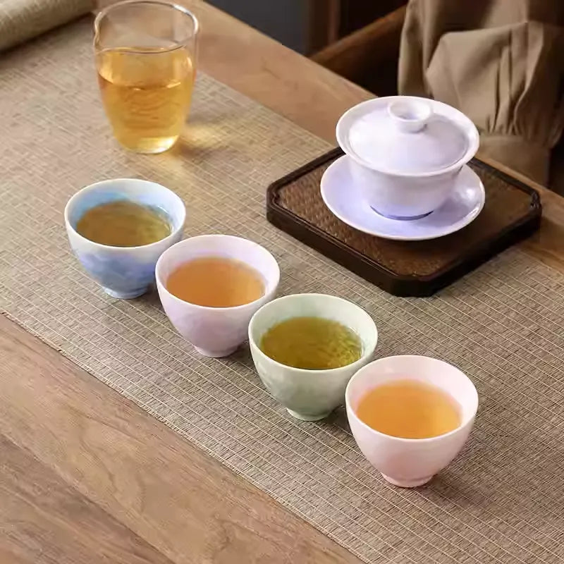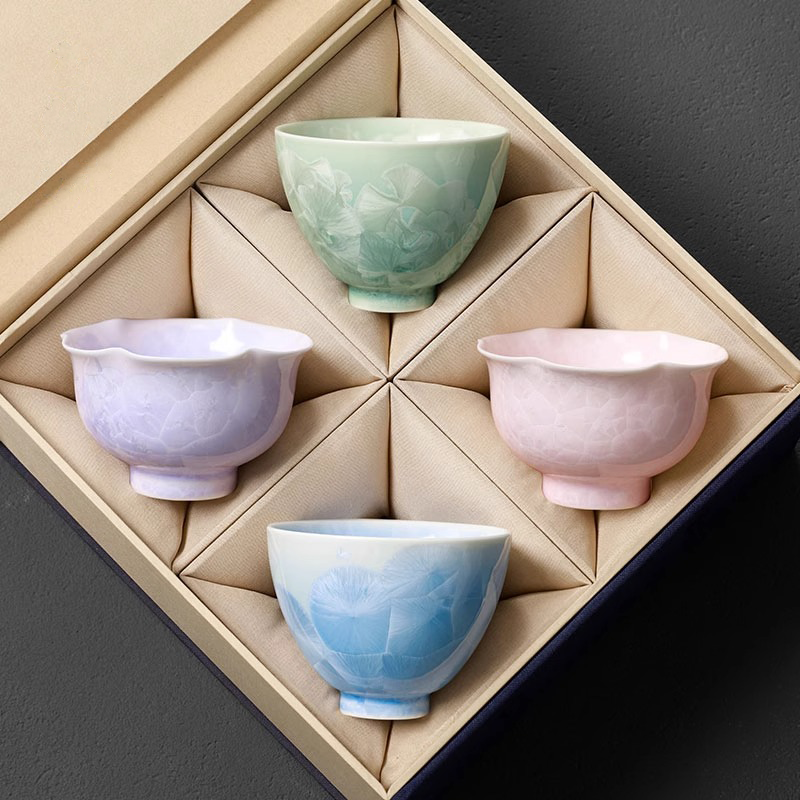 Kiln‑Transmutation Crystalline‑Glaze Tea Cup Set